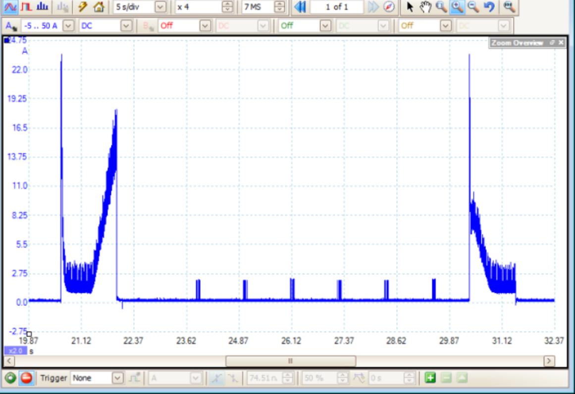 Se interessa,in allegato corrente pinza da aperto a chiuso,misurata al fusibile.La ecu sorveglia la corrente assorbita del motore e se si trova con valori non plausibili blocca uscita con errore.