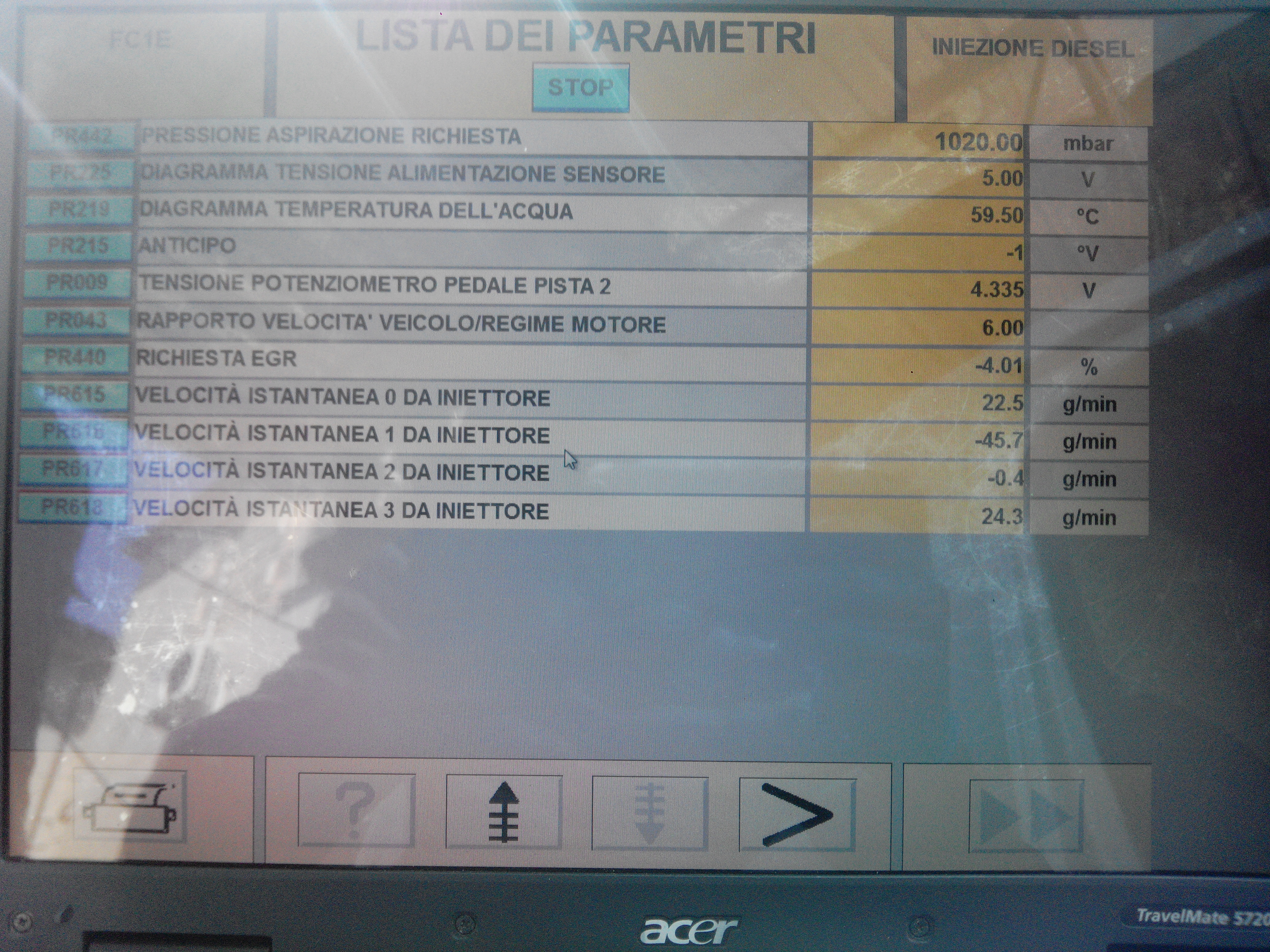 Mi sono accorto che tra i parametri c e la voce quantità gasolio che é di 3mg/corsa ( non so a cosa si riferisce) accelerando sale fino a 14mg/corsa per poi arrivare a 0.0mg/corsa in quel momento smette di accelleraere e i giri motore scendono si sente un rumorino provenire dalla valvola rossa sulla pompa e per tenerlo in moto bisogna schiacciare tutto l acceleratore e inizia a fare moltissimo fumo